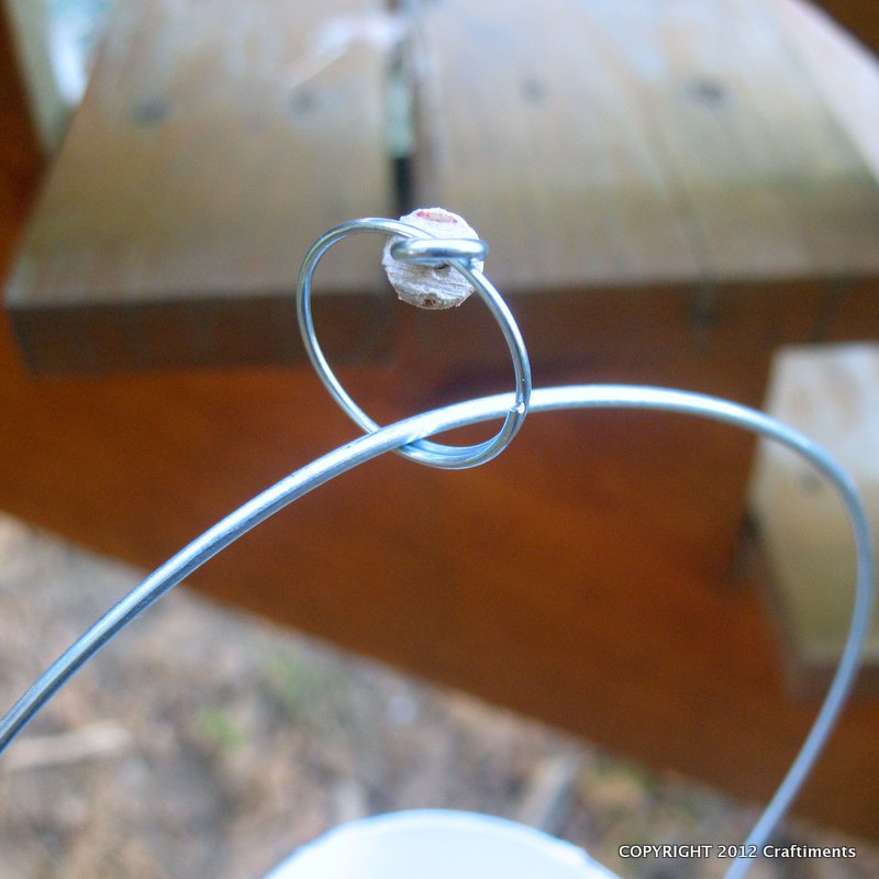 I used pieces of wood dowel for the sticks. To join the stick to the lantern, I screwed a tiny eye-hook in the top of the dowel and attached a light weight split key ring.